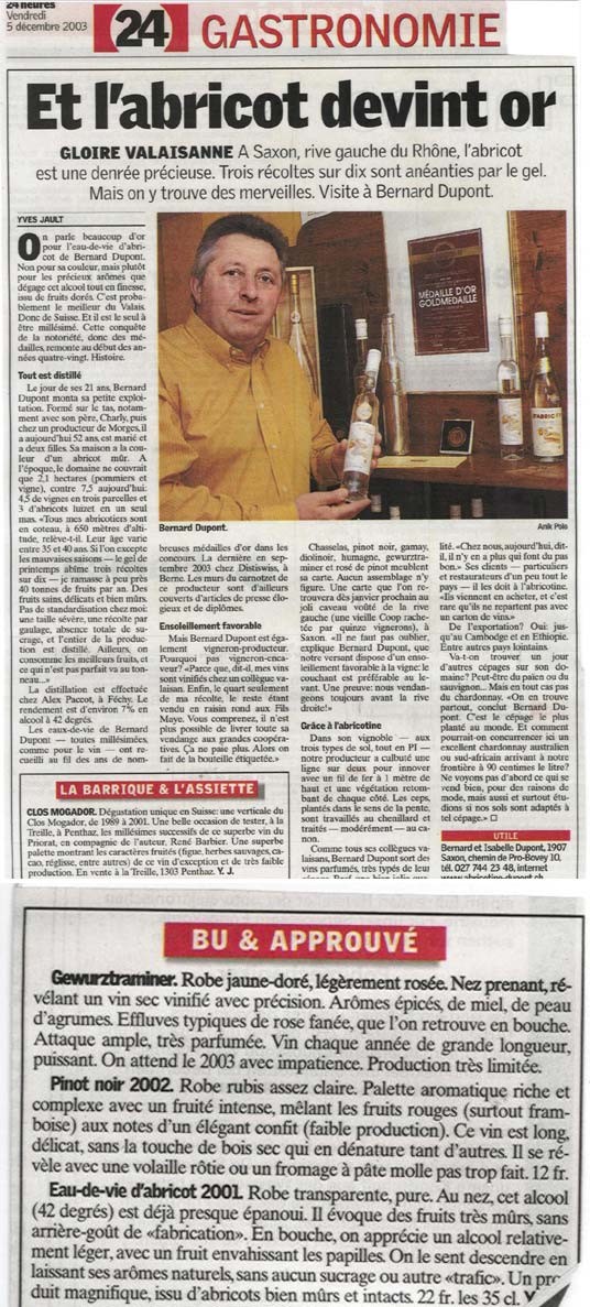Expresso L'abricotine Dupont survole les millésimes
