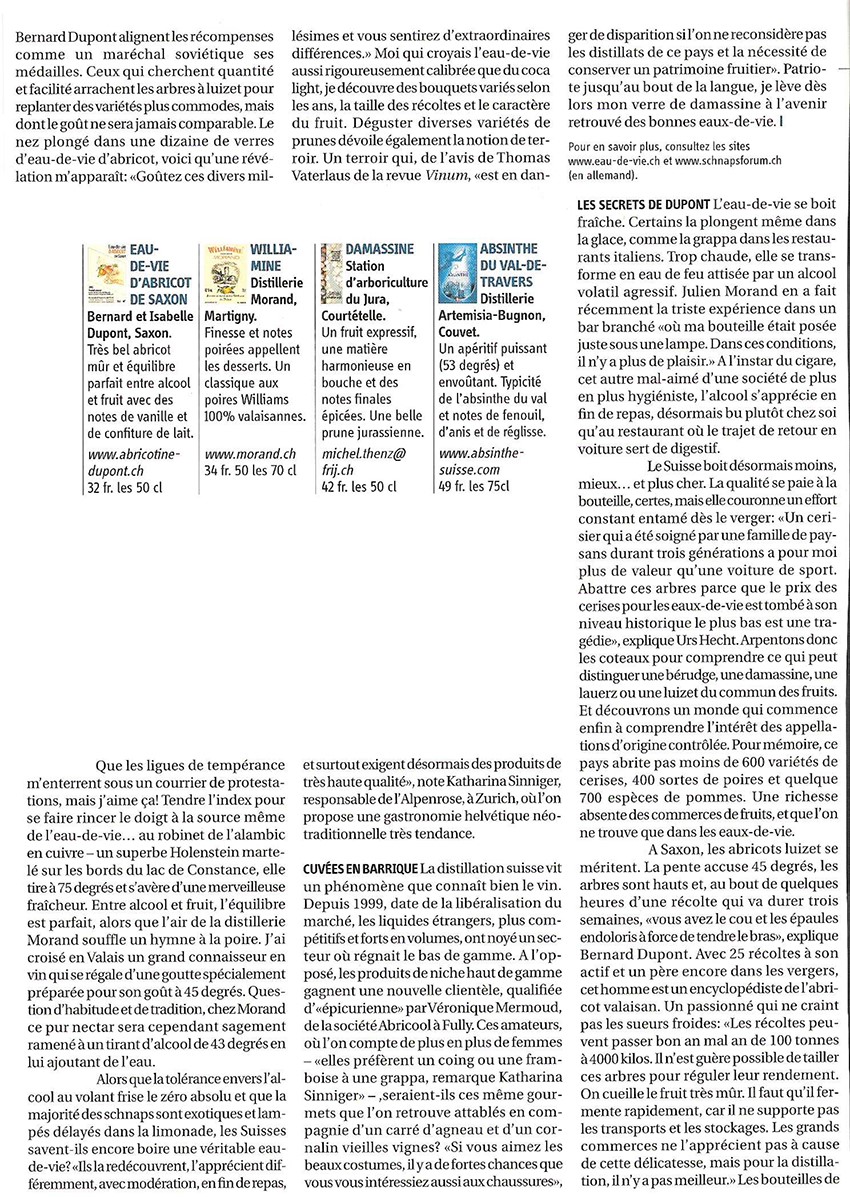 Le Nouvelliste Une eau-de-vie en or